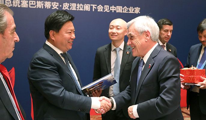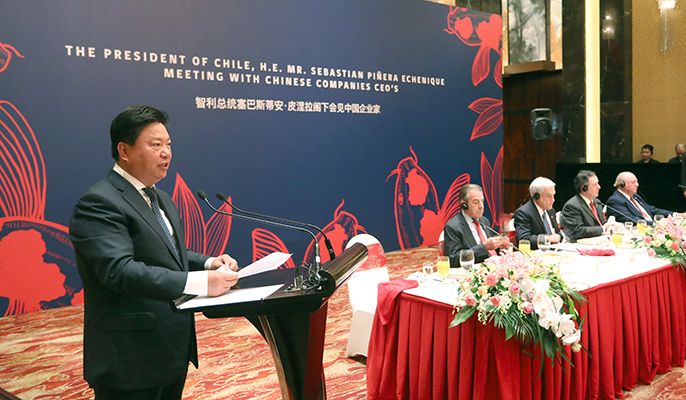 On April 25, Chilean President Sebastián Piñera held a luncheon meeting with Chinese entrepreneurs at Shangri-La Hotel in Beijing. Guo Wenqing, General Manager of China Minmetals, Chairman of MCC and Chinese Chairman of China-Chile Business Council, attended the luncheon meeting and delivered a speech.