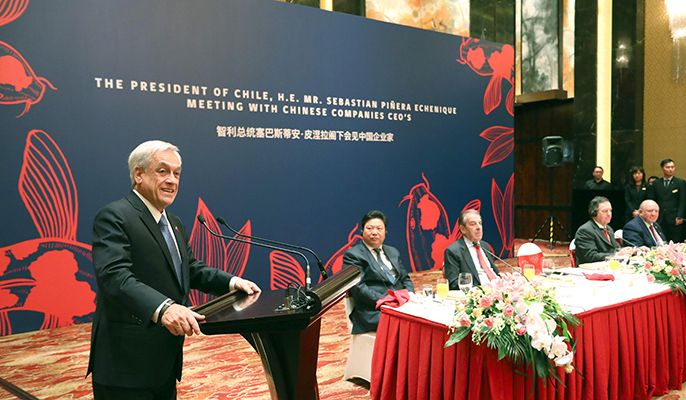 Sebastián Piñera speaking at China-Chile Entrepreneur Luncheon Meeting